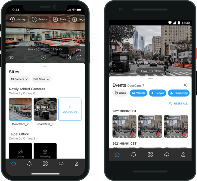 Use Focoten mobile clients (iOS & Android) to access Focoten Cloud AI Surveillance Service anytime, anywhere.